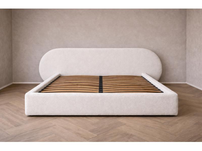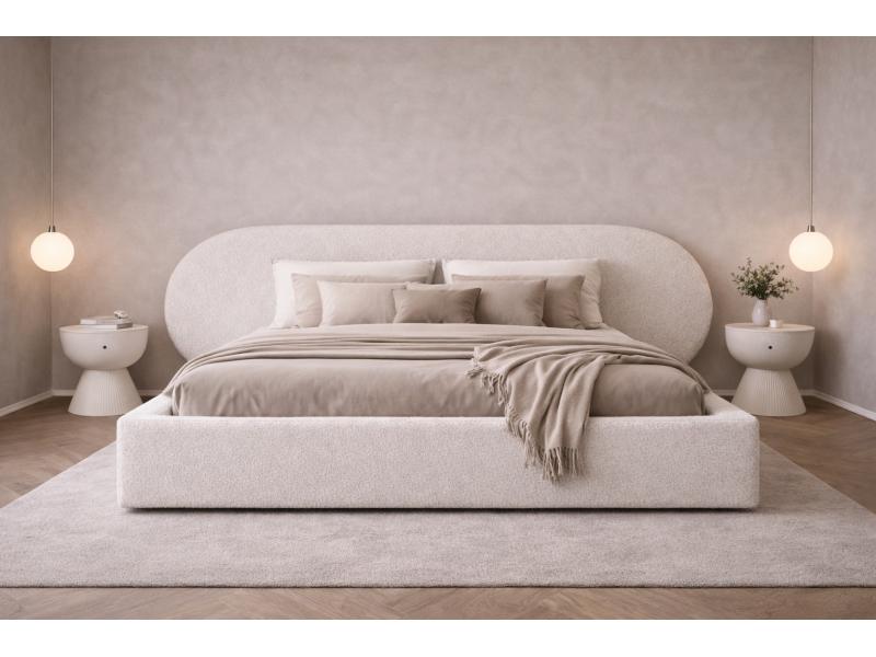Clara Bed este un pat statement, cu design sculptural și tăblie ovală alungită, creat pentru interioare contemporane și spații high-end. Forma sa echilibrată, cu linii fluide și proporții generoase, este pusă în valoare de materialul texturat tip bouclé și de execuția atentă a fiecărui detaliu.