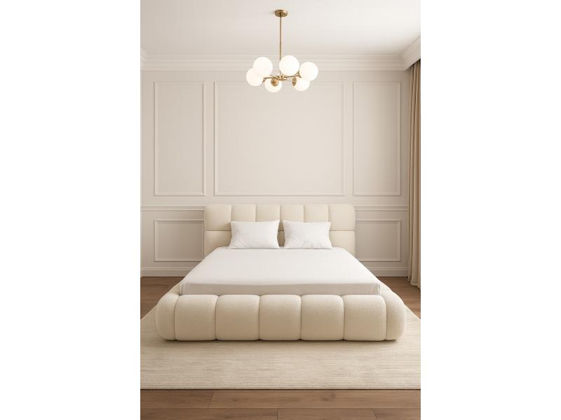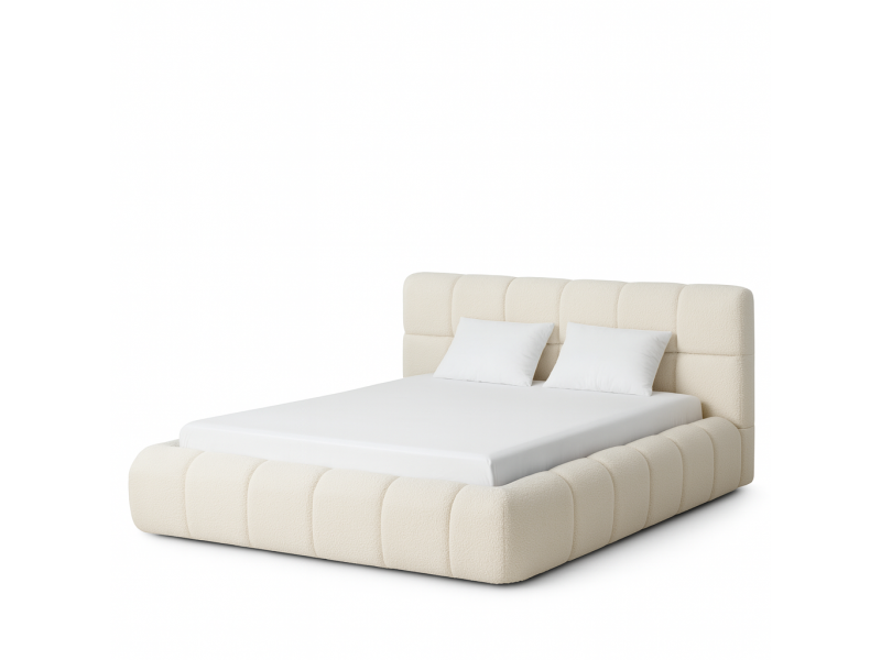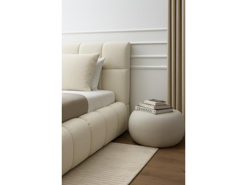 Patul este tapițat în bouclé premium, disponibil într-o gamă variată de culori, pe care le poți alege în funcție de stilul tău.