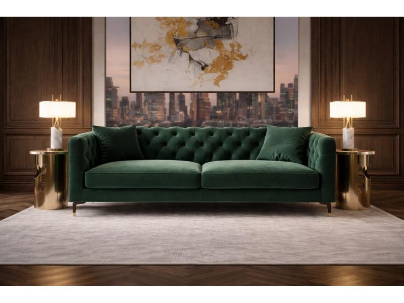 VERON Sofa este o canapea tapițată premium, realizată manual în stil Chesterfield, cu un design contemporan sofisticat și proporții elegante. Silueta echilibrată și spătarul capitonat manual transformă această piesă într-un statement de design, ideal pentru interioare high-end, penthouse-uri și proiecte HORECA premium.