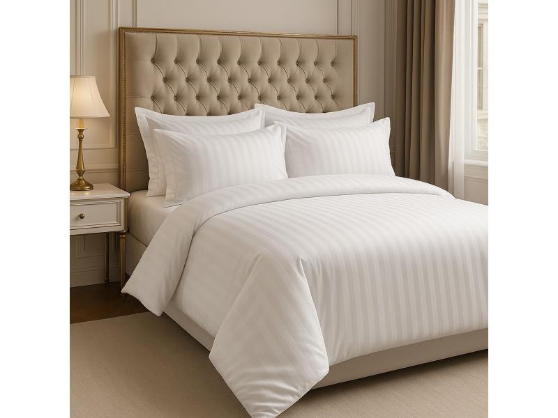 Lenjeriile de pat din bumbac damasc satinat sunt 100% mercerizate și sanforizate, proces care oferă materialului o strălucire elegantă, o textură fină și catifelată la atingere, precum și rezistență sporită la folosire intensivă și spălări repetate.