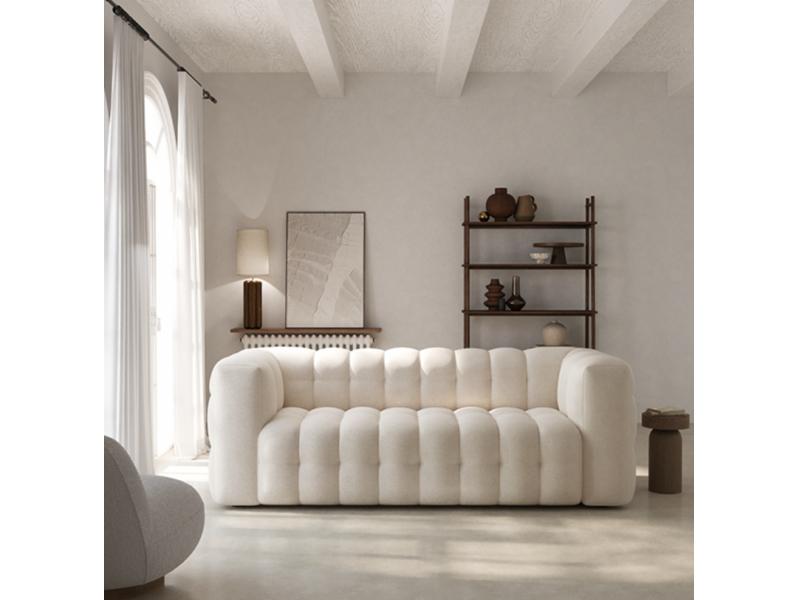 Această canapea fixă de lux este perfectă atât pentru serile liniștite acasă, cât și pentru momentele petrecute alături de familie și prieteni. Formele sale rotunjite și textura pufoasă adaugă un aer sofisticat, dar prietenos, integrându-se armonios în amenajări moderne, minimaliste sau glam.