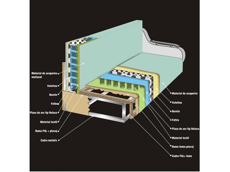 Sezutul canapelei este format din saltele tip relaxa care se imbina perfect, rezultand un pat de dimensiunea unui pat matrimonial.