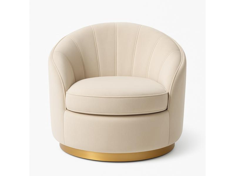 Baza metalică cu aspect auriu aduce un plus de eleganță și stabilitate, iar ceea ce îl face cu adevărat special este posibilitatea de personalizare. Fotoliul poate fi comandat în orice nuanță de material pentru a se potrivi perfect cu paleta casei tale. De asemenea, poți alege între bază fixă sau bază mobilă (rotativă), în funcție de preferințe și utilizare.