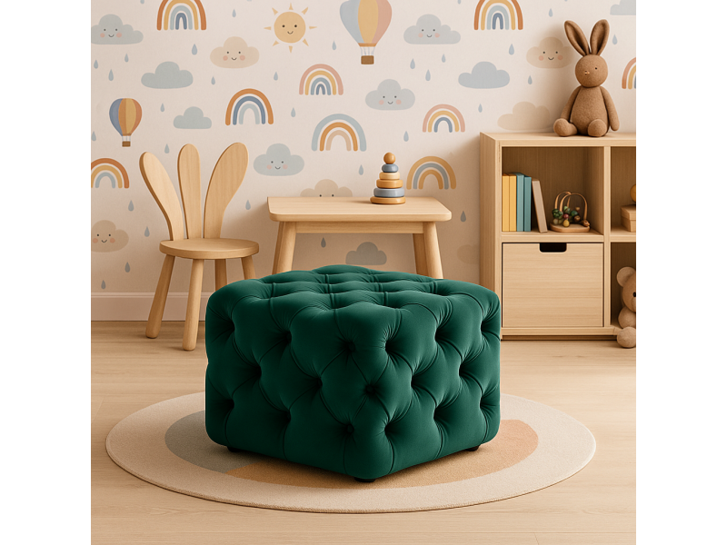 Un obiect de design care atrage toate privirile, acest puf verde Chesterfield adaugă profunzime și eleganță oricărui spațiu. Realizat manual, cu detalii clasice capitonate, puful poate fi folosit ca suport pentru picioare, măsuță de cafea sau loc suplimentar de ședere. Tapițeria sa în nuanță intensă de verde îl transformă într-un element decorativ cu personalitate.