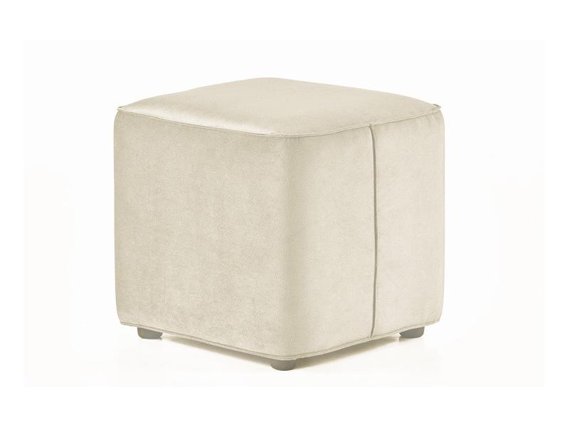 Taburet patrat Cocktail, structura din lemn, catifea impermeabila, ivory, 45x45x42cm