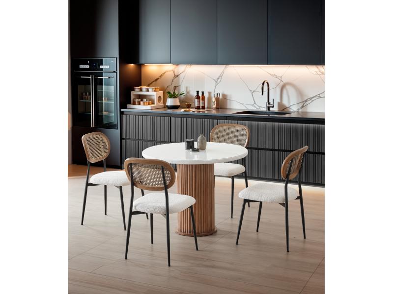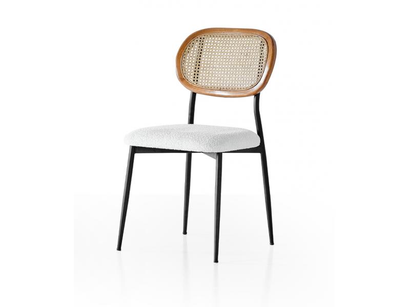 Vento îmbină armonios eleganța naturală a ratanului cu un design modern și rafinat. Spătarul din lemn curbat și ratan împletit oferă un aer cald și primitor, în timp ce cadrul metalic negru și șezutul moale, tapițat, aduc un plus de confort și stabilitate. Ideal pentru dininguri moderne, cafenele elegante sau spații HoReCa ce îmbină stilul retro cu cel contemporan.