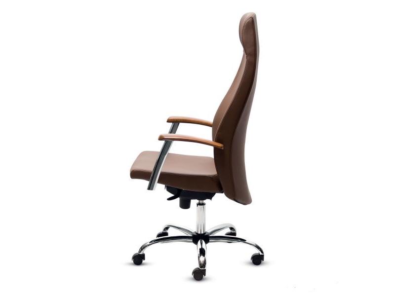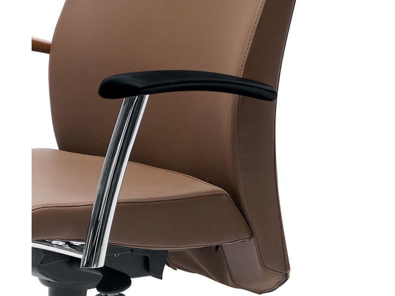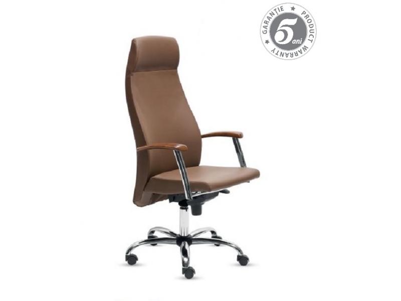Bratele cromate cu lemn, baza metalica cromata si pistonul de asemenea cromat, ofera acestui scaun directorial o nota aparte de eleganta